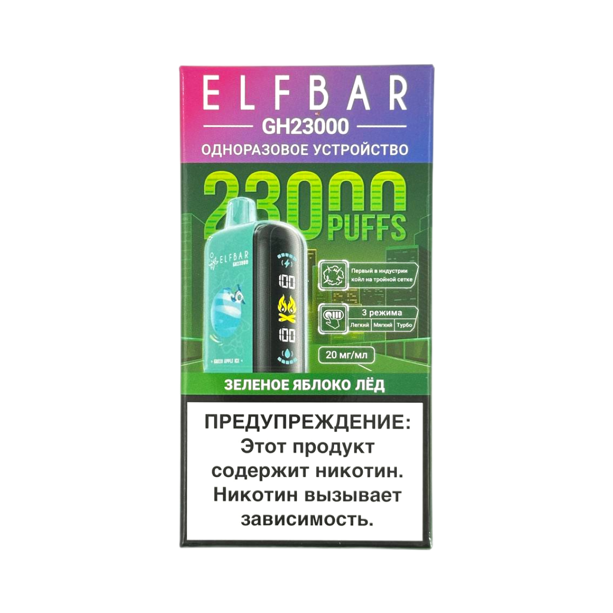 Электронная сигарета ELFBAR 23000 GH PLANET Зеленое яблоко лед – современное устройство для парения с освежающим фруктовым вкусом. Данная модель представляет собой идеальное решение для тех, кто ценит качество и комфорт при использовании электронных сигарет.