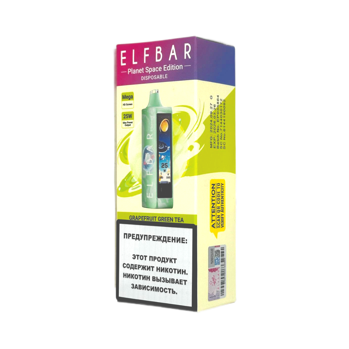 Сделайте правильный выбор – приобретите ELFBAR 25000 PLANET с вкусом грейпфрута и зеленого чая в Snusbar!