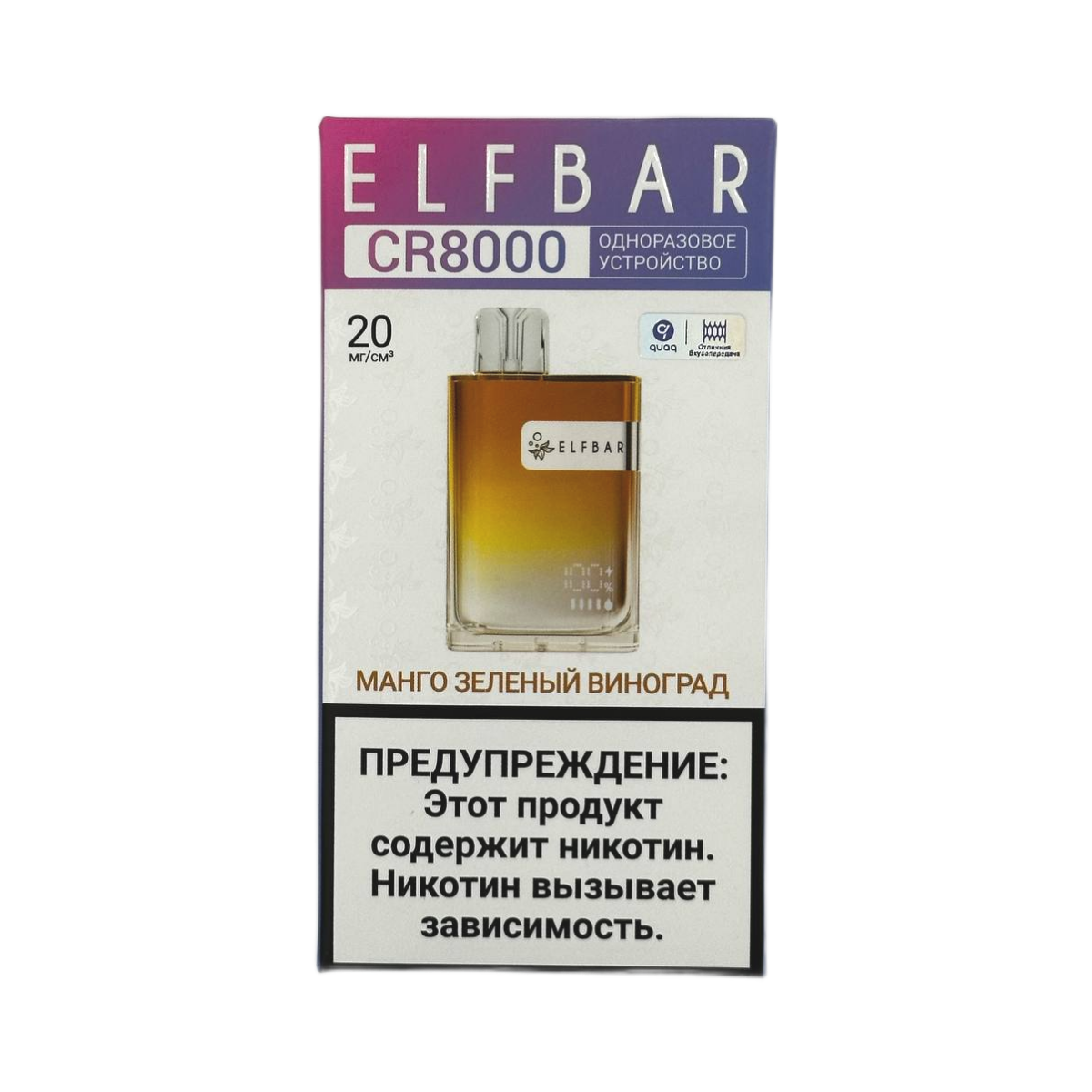 ELFBAR 8000 CR “Манго зеленый виноград” подходит как опытным пользователям, так и новичкам. Использование максимально простое: извлеките устройство из упаковки и наслаждайтесь насыщенным вкусом.