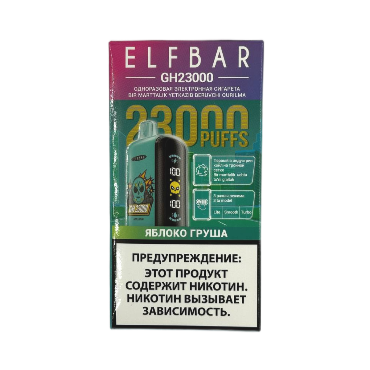 Не упустите возможность приобрести электронную сигарету ELFBAR GH 23000 с великолепным вкусом яблока и груши в магазине Snusbar – вашем надежном партнере в мире современных никотиновых устройств.