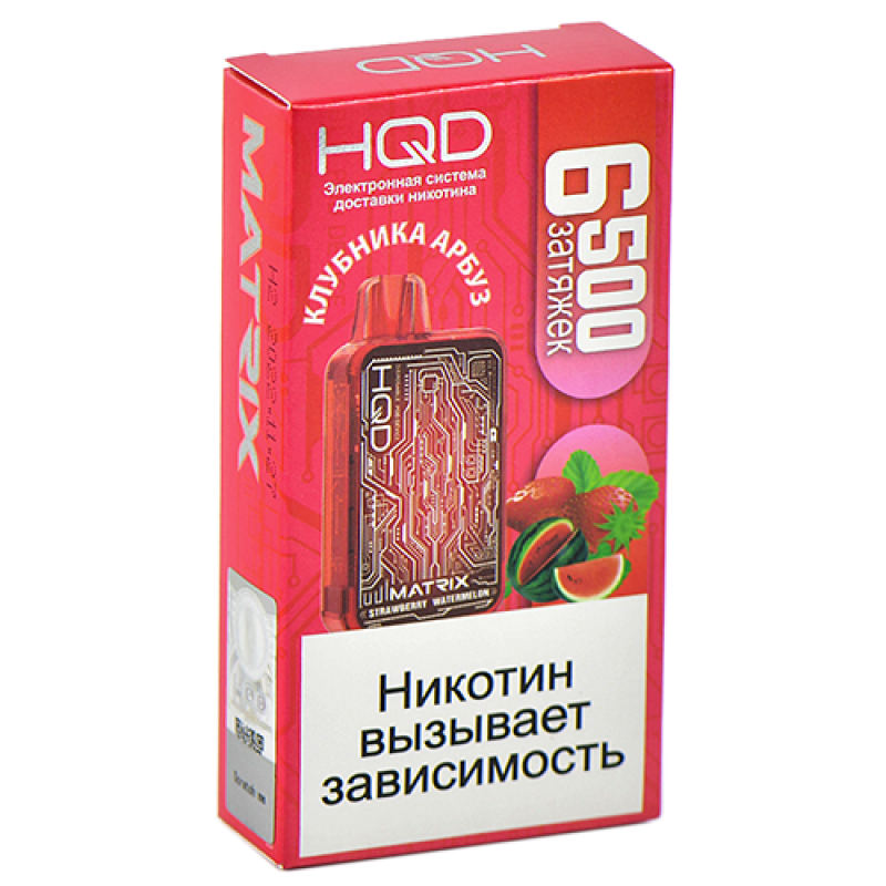 Вкус Клубника, Арбуз сочетает в себе яркую сладость спелой клубники и освежающую сочность арбуза. Такое сочетание создает аромат, который идеально подходит для летнего настроения и приносит удовольствие при каждом использовании. HQD MATRIX с этим вкусом подойдет как новичкам, так и опытным вейперам, желающим разнообразить свои впечатления.