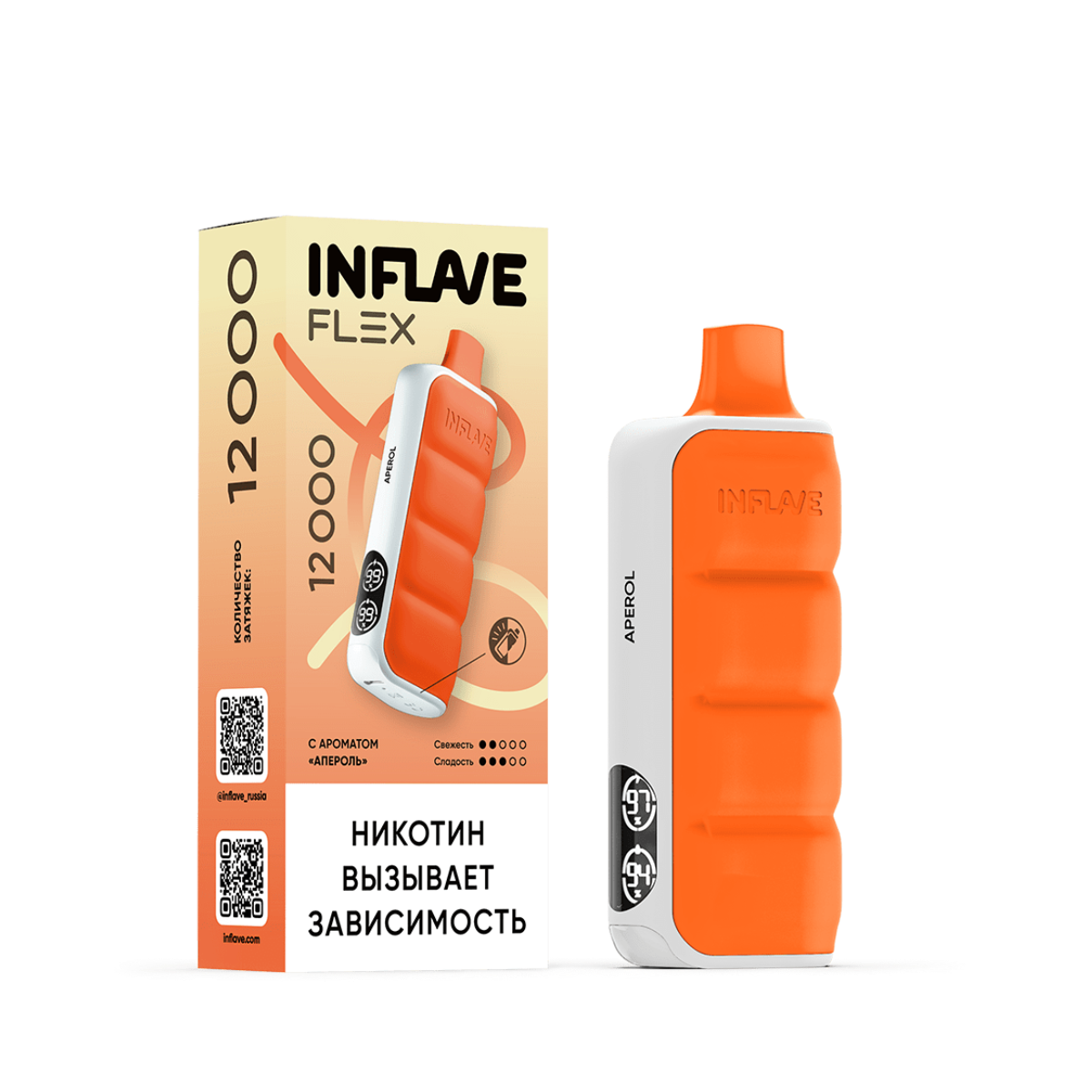 Электронная сигарета INFLAVE FLEX 12000 “Апероль” – идеальный выбор для тех, кто ценит изысканные вкусовые решения и современные технологичные устройства. Приобретайте в Snusbar – надежном магазине электронных сигарет!