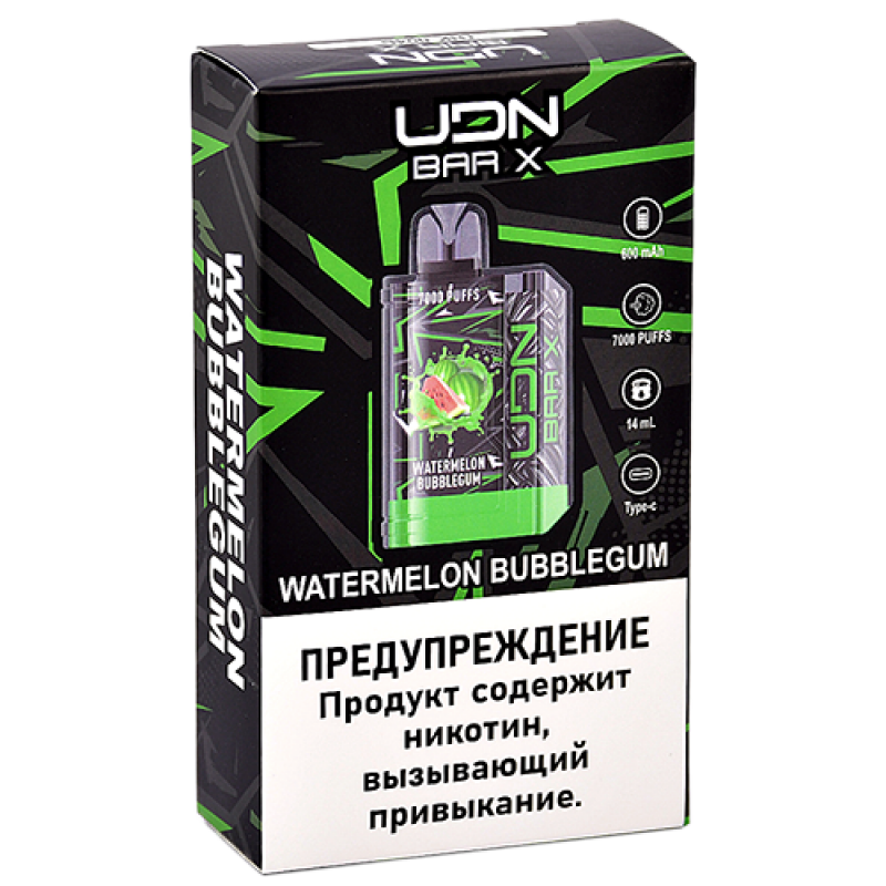 Купить электронную сигарету UDN BAR X III 7000 с вкусом Арбузной Жвачки в магазине snusbar — это идеальный выбор для тех, кто ищет насыщенный и оригинальный аромат. Эта одноразовая электронная сигарета рассчитана на 7000 затяжек, что позволяет наслаждаться длительным и стабильным парением без необходимости обслуживания или подзарядки. Модель UDN BAR X III отличается компактным и удобным корпусом, который легко помещается в кармане и всегда готов к использованию.